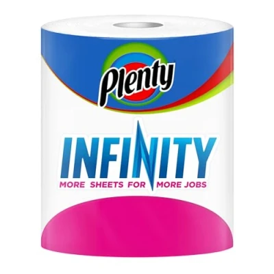 Plenty Infinity gives you 5 rolls in 1 meaning less packaging and fewer cardboard cores than buying 5 individual rolls. From mucky bikes to streaky windows, there's no job that our strong and absorbent sheets can't tackle. Plenty Infinity is so versatile it can be used for a huge variety of household tasks. 375 Sheets. 2ply tissue 5 Rolls in 1. For claim verification email: [email protected] More Sheets for More Jobs 6 Rolls per Pack