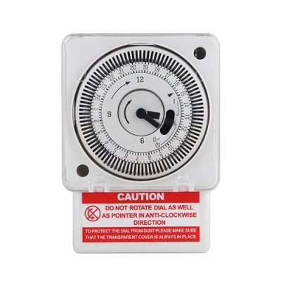 The plikc TIP600 is a daily electromechanical time switch with 1 contact exchange 16A, can be fixed on the wall or installed on a DIN rail. Power requirements: 110/230V Dial: Knights Mechanic Minimum operating time: 15 minutes Exchange contact: 1 NO/NC - Contact flow: 16(4)A / 250V