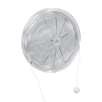 Hole diameter: 200 mm, total diameter: 216 mm, maximum depth: 55 mm, maximum glass thickness: 37 mm, insect net Plikc Aero is a fan aerator for windows and windows, perfect for letting an air flow from outside the room. Improve the health of your environment with a practical, simple to install and, above all, effective system. Once installed on the window, to change the air simply open the lid by pulling one of the two strings. The same simple gesture will be used to close it. The incoming wind will move the propeller thus speeding up air exchange in a surprising way despite the window being closed. The plikc Aero is made entirely in Italy with a transparent thermoplastic material resistant to atmospheric agents. It can be installed on either a single glass or a double-glazed insulating glass (double glazing) by simply adjusting the rear ferrule or by turning it. This means that the aerator can be adapted to glass windows up to 37 mm thick. Open and close with pull cords Made of transparent thermoplastic 100% Made in Italy
