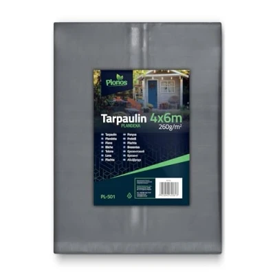 Plonos Tarpaulin 4 x 6 m 260 g/m² Waterproof, UV, Extra Tear Resistant with Metal Eyelets, Black, 4x6