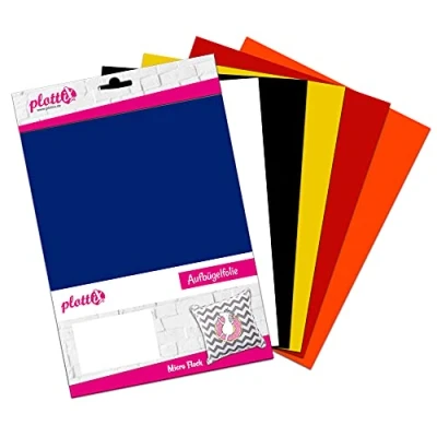 Iron-on film for textiles made of cotton, polyester and blended fabric MicroFlock provides a fine microfibre surface after pressing Suitable for all standard cutting plotter systems (e.g. Brother, Silhouette, Cricut etc.) Contains one of each film: white, black, red, orange, yellow, blue