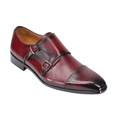 PLS 4001 VEAU BORDEAUX Mens Genuine Leather Monk Shoes in Maroon Size 6UK