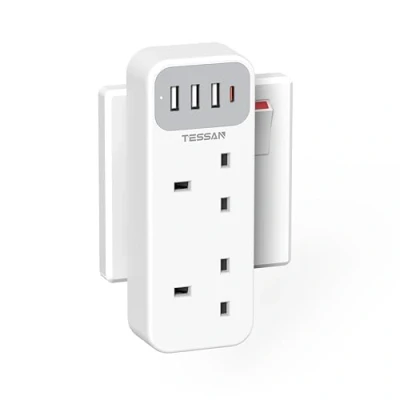 6 in 1 Plug Adapter: This double plug sockets is rated at 3250W; It can turn 1 socket into 2 AC outlets and 4 USB (1 USB C) ports, it can charge 6 devices at the same time; You can use it in any place such as home, bedroom, kitchen, office and dorm room Double Socket with USB: 1 USB C and 3 USB A ports can detect multiple devices and dynamically distribute current, the USB C can reach a maximum output 15W; This multiplug socket uk is suitable for phone, pad, laptops and household appliances etc Safe Multi Outlet: This multiplug extension provides safety for your devices; With a built-in 13A fuse, it protects your valuable hairdryers, shavers, and other appliances from overload, the plug adapter with USB allows for a reliable charging environment Non Blocking Design: The double adapter plug uk takes up only one socket on the wall, the vertical design won't block the adjacent sockets; 2 way plug adapter uk with 53 mm long space fits for 2 big socket, giving you a neat and tidy place Small and Compact: The multi plug extension sockets has a compact design (56X148X30mm), with the portable size, the multi socket plug can be easily carried in suitcase and bag, ideal for your travel, business trip, making it fully cruise ship essentials, Weight: 0.4629707502 Pounds, Manufacturer: Zhuhai Tessan Power Technology Co., Ltd.