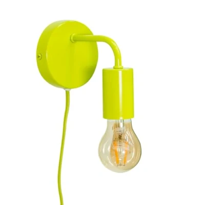 Plug in Colour Pop Lime Green Wall Light, Easy Fit Lamp Bedroom Living Room Hallway + LED Bulb