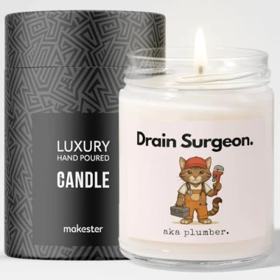 Drain Surgeon, aka plumber. Quality Over Everything - We've scoured every nook, cranny, and soybean field to get the top-shelf stuff for our candle - the kind of wax and essential oils that would make a candle connoisseur weep with joy. Fresh Fragrance - A captivating aroma made from natural essential oils and a blend of sugared almond, vanilla, and white musk. It's (probably) the best-smelling candle in the world. Great Size, Unforgettable Glow - 220g of high-quality soy wax ensures that this candle will keep on going and going. Enjoy over 40+ hours of uninterrupted candle pleasure.