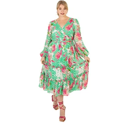 Plus Size Dresses for Womens Ladies Long Sleeve Maxi Dress Green Print 24