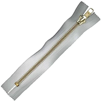 Plush Addict Brass Teeth Jeans Zip for Sewing, Crafts, Clothing and Accessories - White - 7" (17cm)