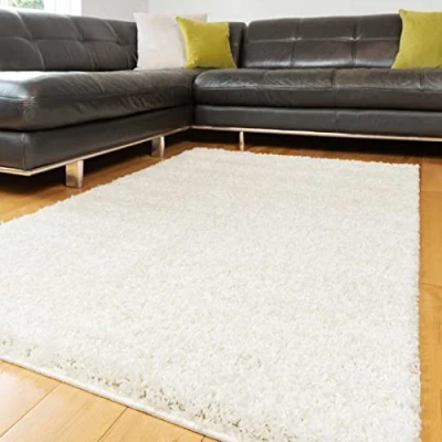 Plush Cream Off White Soft Pile Shaggy Shag Area Rug Modern Fluffy Plain Living Room Lounge Sunroom Bedroom Rugs 111cm x 161cm