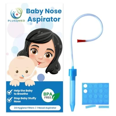 PLUSQMED, Baby Nasal Aspirator, SnotSucker,Baby Nose Mucus Sucker Starting from Newborn Infants Kids,Baby Sucker,Nose Suction,Baby Cleaner,Easy to Clean, with 24 Hygiene Filters