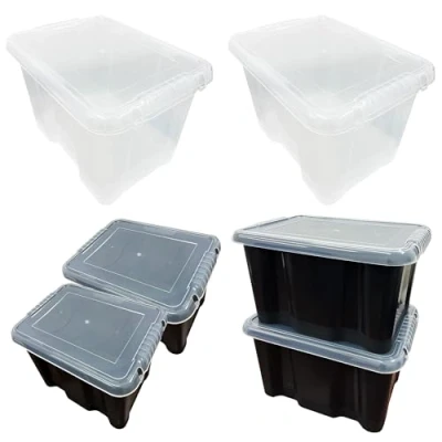 Size/Dimensions: 24 Litre Capacity / 24cm x 33cm x 44cm (H x W x L) Approx - Each container is spacious and deep enough to store blankets and beddings, these containers are suitable to use around the home, office, schools and garages. The black base containers feature a strong plastic base and arrive complete with a see through lid. The transparent lids make it easy to identify the contents of each box without having to open each one up and create a mess. Clear 24 litre containers are fully transparent so you can clearly see what’s inside each container from all side of the box this saves you from having to open each container up and emptying it out. Storage boxes are a great way to keep your surround area neat, clean, tidy and organised at all times. The containers are designed to allow you to store a range of items from clothing, tools, toys to paper work. Extremely lightweight and reliable the containers can be stacked when in use and nestled with the lids off this also maximises floor space whilst keeping items organised.