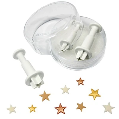 AmazonIdeal for use with sugar paste, gum paste or flower modelling paste Dimension: Small 7 mm (0.3"), Medium 10 mm (0.4"), Large 13 mm (0.5") Set of 3 cutters Made from food grade ABS plastic Handwashing recommended