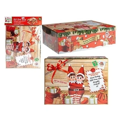 Get the little ones prepared for Christmas with this Elves Behavin' Badly Large Christmas Box. Perfect for using as a Christmas eve box or just to fill presents with, this box reads ' Sent Via Sleigh Mail' and ' Some Parting Gifts From Your Naughty Friends' on the front, great for getting the kids excited before the big day!. 1 x Elves Behavin' Badly Large Christmas Box. 26.5 x 17 x 8.5 centimetres. Christmas Elf Eve Box. Perfect for giving small gifts before Christmas