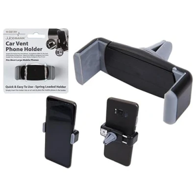 ADJUSTABLE CAR VENT PHONE HOLDER: Keep your phone securely in place while driving with our easy-to-install, 1-piece adjustable car vent phone holder – perfect for hands-free navigation and maintaining road safety. WIDE COMPATIBILITY: Accommodates smartphones with widths from 6.6cm to 8cm, ensuring a snug fit for a wide range of devices, including iPhones, androids, and GPS devices. SPRING-LOADED CLOSING: The highly durable spring-loaded mechanism keeps your phone firmly in place on bumpy roads and sharp turns, reducing the risk of falling or slipping. UNIVERAL AIR VENT ATTACHMENT: Designed to fit most car air vents, the phone holder attaches seamlessly to your vehicle, keeping your line of sight clear and providing easy access to your phone's screen. SLEEK DESIGN IN CLASSIC BLACK: Complement your car's interior with the adjustable car vent black phone holder, blending style and utility to enhance your hands-free driving experience. Upgrade your vehicle accessories now for a clutter-free dashboard!