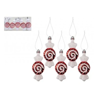 Decorate your Christmas tree and home with a sweet touch using these Candy Cane decorations. Designed with a metallic red middle and white glitter detailing, these sweet hangers come with silver threads included so you can easily hang them from your tree.. 1 x Candy Cane Red & White Swirl Hanging Decorations 5 Pk. Silver threads included. L 10cm x W 4cm (approx)