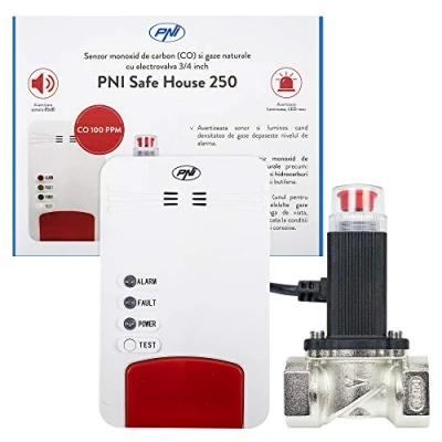 Designed with two semiconductor sensors, the PNI Safe House Dual Gas 250 is the ideal solution from all points of view: durability, versatility, high tolerance to extreme environmental conditions and corrosive environments. With the help of the PNI Safe House Dual 250 kit, you benefit from multiple warnings: both sound over 85dB and light through the LEDs on the front These indicate in addition to the alarm status and other functions of the device. Benefit from the advantage of purchasing a complete package for the safe detection and interruption of the gas supply of a house. The package contains a sensor and a solenoid valve. Power and connection cables are included., Weight: 1.30954583628 pounds, Manufacturer: Onlineshop