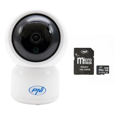PNI IP390T 1080P video surveillance camera package with PTZ WiFi H264 128GB MicroSD memory card SD adapter