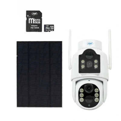 PNI IP792 Video Surveillance Camera, Dual Lens 2MP + 2MP, 3W Solar Panel and MicroSD 128GB Memory Card Included