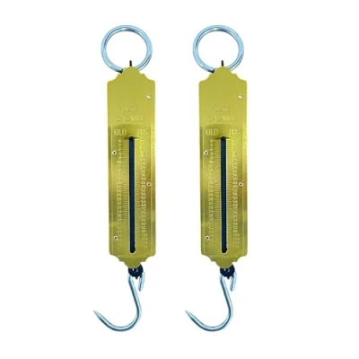 PNJB, Pocket Spring Balance Luggage Scale 25 Kg Weight Measuring Fishing Luggage, Golden Mechanical with Hook for Home, School, Classroom, Kitchen Use (2X PACK)