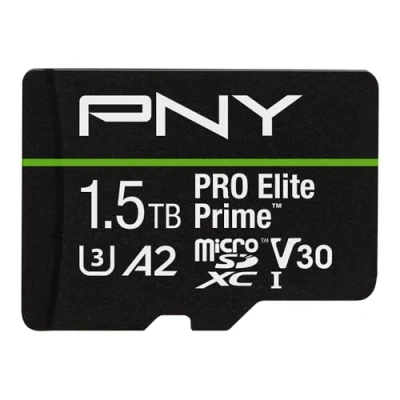 PNY 1.5TB PRO Elite Prime Class 10 U3 V30 A2 microSDXC Flash Memory Card + SD adapter up to 200MB/s, 10, U3, V30, A2, 4K UHD, Full HD, UHS I