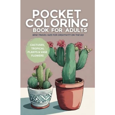 Pocket Coloring Book for Adults: Cactuses, tropical plants and vase flowers Mini travel size creativity on the go (Pocket Sized Coloring: Nature Series)