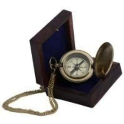 Dry needle compass in a pocket watch-style brass case, supplied in a polished hardwood box. Compass diameter 1.75", length of chain 18". Box measures 3x3x1.5".… From Nauticalia, specialists in nautical gifts and accessories since 1974 Durable and strong
