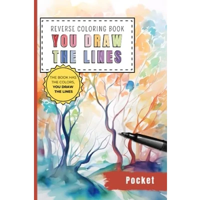 Pocket Reverse coloring Book: Small doodle book for adults, teens and kids. Landscapes, patterns, flowers more abstract watercolor illustrations 6x9"