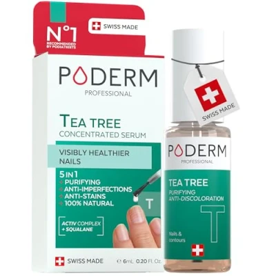 𝐅𝐎𝐑𝐌𝐔𝐋𝐀 𝐄𝐍𝐑𝐈𝐂𝐇𝐄𝐃 𝐖𝐈𝐓𝐇 𝐓𝐄𝐀 𝐓𝐑𝐄𝐄: Enriched with Tea Tree Essential Oil, known for its purifying and cleansing properties, this treatment helps limit yellowing over time and purify the nail surface. The combination of squalane and Active Complex helps nourish and strengthen the nail. 𝐀𝐍𝐓𝐈-𝐒𝐓𝐀𝐈𝐍 & 𝐑𝐄𝐏𝐀𝐈𝐑 𝐂𝐀𝐑𝐄: Concentrated serum designed for yellowed, stained, and damaged nails. Enriched with Tea Tree, it helps reduce the visible appearance of stains and yellowing while supporting nail repair. It also helps nourish and clarify the nail. Ideal for restoring a clean surface and maintaining nail quality daily. 𝐏𝐑𝐎𝐕𝐄𝐍 𝐕𝐈𝐒𝐈𝐁𝐋𝐄 𝐑𝐄𝐒𝐔𝐋𝐓𝐒: 100% perceived a visible reduction in stains and 95% believe the product sanitizes and purifies the nails.* With regular use, the formula helps improve the appearance of yellowing and maintain visibly healthier-looking nails. Usage test conducted by an independent laboratory on 20 participants over 28 days. 𝐒𝐈𝐌𝐏𝐋𝐄 𝐃𝐀𝐈𝐋𝐘 𝐀𝐏𝐏𝐋𝐈𝐂𝐀𝐓𝐈𝐎𝐍: Apply 1 to 2 times per day on the clean, dry nail and around its contour (cuticles and grooves). Gently massage or allow it to absorb. Can be used on bare or polished nails, including alongside the Color Care range. 𝐃𝐄𝐕𝐄𝐋𝐎𝐏𝐄𝐃 𝐁𝐘 𝐀 𝐏𝐎𝐃𝐈𝐀𝐓𝐑𝐈𝐒𝐓 & 𝐌𝐀𝐃𝐄 𝐈𝐍 𝐒𝐖𝐈𝐓𝐙𝐄𝐑𝐋𝐀𝐍𝐃: PODERM is a pioneer in professional foot and nail care, designed by an expert podiatrist and manufactured in Switzerland according to the strictest pharmaceutical standards. This guarantees unmatched medical-grade safety, effectiveness, and quality. Enjoy professional-level care directly at home.