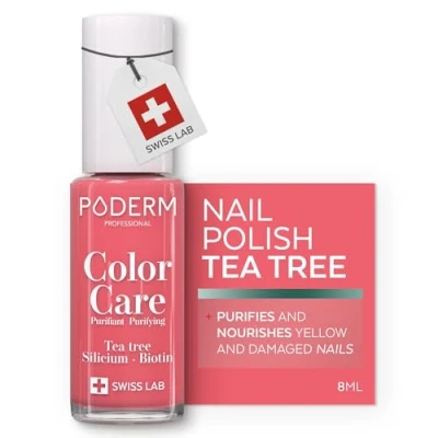 PODERM FUNGAL nail INFECTIONS Coral Pink varnish TEA TREE Prevention & treatment of Nails Yellowed/Damaged by TREATS COLOURS foot/hand Swiss Made