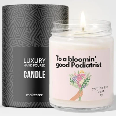 Podiatrist Gifts Luxury Soy Wax Candle Vanilla, Jasmine, Sugared Almond Makester