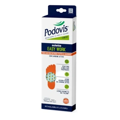 Effects: the honeycomb structure is extremely breathable and promotes air circulation. Activated carbon limits and counteracts sweating and odours. The insoles have a cushion in the heel area for a cushioning effect Washable: the insoles are washable by hand in warm water or in the washing machine at 30 degrees with soap or mild detergent Use: cut the inserts to the desired size according to the marking line. Make sure the product has the correct shoe size and is inserted correctly. One is recommended every 6 months COMPOSITION: the work insoles are an alternative to gel insoles thanks to the innovative 3D Comfort technology, which has been developed with a honeycomb structure of gel, shock absorbing heel pad and activated carbon