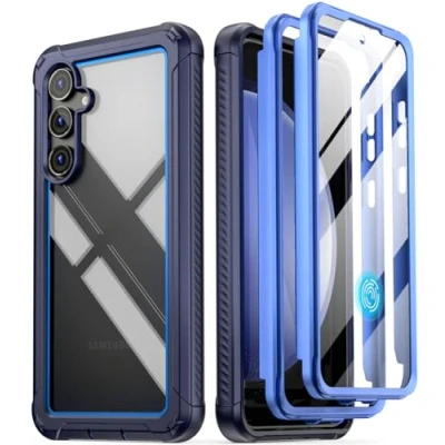 Poetic Guardian Case for Samsung Galaxy S23 FE 5G [20 FT Mil Grade Drop Tested], Built in Screen Protector [Work with Fingerprint ID],Full Body Shockproof Bumper Cover [Update Version], Blue/Clear