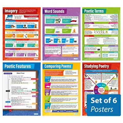EDUCATIONAL CHARTS DESIGNED BY TEACHERS: Our set of 6 Poetry posters helps students to learn, engage and remember more information than ever before. Covering a range of core English topics, these unique school posters can play a vital role in improving both students' understanding and classroom décor. SUPPLEMENT KNOWLEDGE: Our educational school posters are colourful, beautifully illustrated and contain a huge amount of valuable information. The set of 6 Poetry posters is specifically designed to help students gain a greater understanding of complex English topics. The wall charts are a great resource for Schools, Classrooms, English Teachers, Students, Tutors, Home School Parents and Home School Kids. MAKE LEARNING FUN: Engaging, clear and colourful designs and images create a fun learning environment in which students can excel. Our amazing wall posters can help to increase students’ interest towards English, while recapping any key information they've been taught. LARGE SIZE – IDEAL FOR READING FROM A DISTANCE: Our school wall charts are a generous size, measuring 850mm x 594mm (A1). This ensures all posters are easily readable from a distance. Our educational posters are a fantastic way of brightening and decorating any classroom and can easily complement every type of learning environment. THE UK’s NO. 1 PROVIDER: Brought to you by Daydream Education, the UK's leading provider of educational posters for schools, with a range that spans over 25 subjects across key stages 1 – 5. By combining a bold, visual approach with simple, concise information, we have provided over five million resources to more than 50,000 classrooms worldwide.