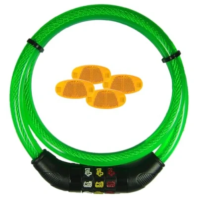 Symbol cable lock green + 4 spoke reflectors - With eight different symbols instead of numbers - Choice of combinations - Length: 80 cm - Cable diameter: 12 mm, Manufacturer: POINT
