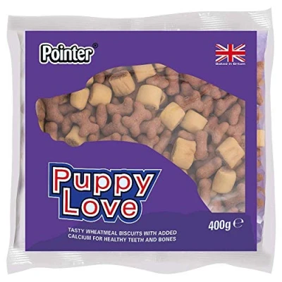 OVEN BAKED TO PERFECTION – Oven baked perfectly for our four legged friends, these dog treats are the perfect snack or a helping hand when training your dog. NO ADDED ARTIFICIAL FLAVOURS OR PRESERVATIVES – These puppy love biscuits are formulated free from artificial flavours and preservatives. A complementary pet food for dogs. ENRICHED WITH VITAMINS AND MINERALS – These biscuits are made with added vitamins and minerals, and enriched with added calcium for healthy teeth and bones. MADE IN BRITAIN – High quality baked dog treats made on our farm based in the heart of Lincolnshire. FAMILY RUN BUSNIESS – Here at Pointer Pet Products we have been making innovative single layer and multi-layer dog biscuits and treats for over 50 years.