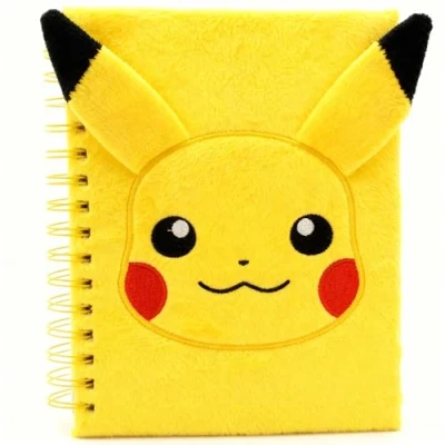 Pokemon Pikachu Plush Notebook Cute Fluffy Yellow Cover Spiral Journal Notepad Hard 80 Pages Official Pokémon Writing Pad for School & Collectors (15 x 21 cm)
