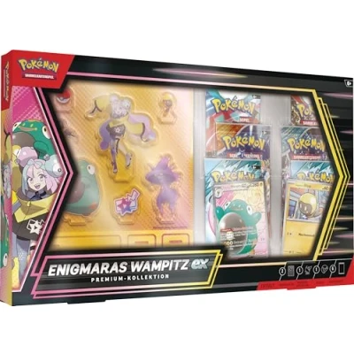 Give your game a boost with this electrifying premium collection that includes a full-screen holographic promo card of Enigmaras Wampitz-ex and a holographic card of Enigmaras Blipp. This unique set includes an Enigmara and Wampitz photo sticker plus 6 randomly chosen Pokémon TCG booster packs - each booster contains 10 playing cards and 1 base energy. Cards vary depending on the booster pack. Free scene for the head of the Fermanca City Arena with 7 plastic supports: Enigmara, Wampitz, Traunfugil, Blipp, Voltrel, a Poké Ball, the Enigmara symbol and a double-sided background. Also includes 1 code card for Pokémon TCG Live. It is a great gift for collectors and players who allow you to add some great cards to your collection., Manufacturer: Amigo Verlag