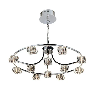 This circular frame finished in Polished Chrome creates a symmetrical collection of fittings. The craftsmanship and polishing of Optical Prism Glass shades can be seen by the clarity of the shades. The precise angled sides reflects light creating a colour spectrum. There is also an option of coloured spectrum crystal glass which increases the intensity of the colours emitted by the glass. Another collection of Quality products from Diyas.