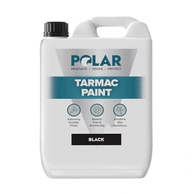 Water-Based Solution: Polar Tarmac restorer paint is formulated with a safe, environmentally friendly, water-based solution. It contains no harmful chemicals, making it completely child- and pet-friendly. Ideal for use on driveways and walkways, it features an added slip-resistant formula for enhanced safety Enhance & Protect: Our driveway paint for concrete adds a long-lasting protective layer that revitalises and enhances your tarmac or concrete driveway. It guards against oil and petrol spills, weathering, and weed growth, providing a tough, durable finish that keeps your driveway looking as good as new Interior & Exterior Use: Formulated for both interior and exterior applications, this paint is ideal for a variety of uses. It excels as a line marker for outdoor areas such as driveways, concrete floors, recreational spaces, and car parks. It is also effective for marking interior walkways in offices, warehouses, and corridors. Additionally, it can be used for tarmac repair, delivering a seamless finish and enduring protection Easy to Apply: This paint is simple to apply, offering excellent coverage with a brush, roller, or spray. Ensure the tarmac or concrete surface is clean and dry before application. One 5-litre tin covers approximately 35 m². Apply a minimum of 2 coats and allow to dry within 2-4 hours. For optimal results, we recommend applying Polar Tarmac Paint in warm, dry weather conditions Attractive Finish: Enhance your tarmac or concrete surfaces with a stylish matt finish available in black. This paint provides a subtle sheen while offering a robust finish that revitalises and restores home driveways, Weight: 14.33004703 Pounds, Manufacturer: Polar Specialist Coatings