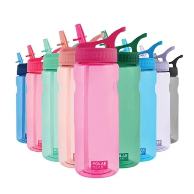 Polar Gear Aqua Grip Water Bottle BPA Free Reusable Bottles With Straw 650ml Sports Perfect for Gym, Cycling & Work, Berry