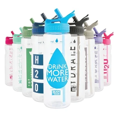 Encourage Yourself To Drink More Water: This Polar Gear water bottle is great at helping to keep you hydrated. Our Drinking bottle features motivational messages that serve as a reminder to stay on track for drinking with handy hourly markers down the side of the bottle. Our water bottles with straw will help you to stay healthy and quench your thirst. Each design is different, so grab one for all the family to keep cool this year! A Smart Bottle You'll Never Lose: It’s only too easy to leave your reusable water bottle somewhere when you're busy. Use the integrated carry hoop to hook onto your bag and never lose your drinks bottle with straw again. Our flip-up straw opens with one finger, so it's easy to sip when working out or driving. You don't have to tip your head back when sipping due to the smart air valve, so this straw bottle is great for keeping safe and not losing focus. Flip the straw to close the secure silicone seal lid and prevent spillage. Uber Functional: Super lightweight with a detachable internal straw, you can pop in the drink of your choice and away you go. The clear water bottle fits into most standard bike and car drink holders. Safer and less breakable than glass bottles, this 750ml capacity gym water bottle is made of SK Ecozen plastic and is perfect for reaching your daily hydration goals whether you are going to the gym, doing yoga, travelling or even relaxing in the hot tub. Dishwasher Safe: Our drinks bottles for adults are made from SK Ecozen which is as strong as Polycarbonate, stronger than Titan and dishwasher safe. SK Ecozen is an Eco recycled plastic which has excellent transparency and is virtually unbreakable. Our highest quality drinking bottle with straw which is sure to last a very long time! Hydrate With Your Favourite Drink: The extra-wide neck and screw top makes for easy filling, cleaning and emptying of your gym bottle; whether you add ice cubes, water, or even fruit, this water tracker bottle has the capacity for it all. Great gift idea for keeping your loved ones cool and hydrated, and with no plastic taste, the bpa free water bottle makes sure whatever drink you have tastes fresh. Eco-friendly & Reusable: Save the equivalent of 1460 plastic water bottles from getting tossed into a landfill by coaching the next generation into using a reusable non leak water bottle. Helping the planet has never been so easy… or so sleek with our refillable water bottles!