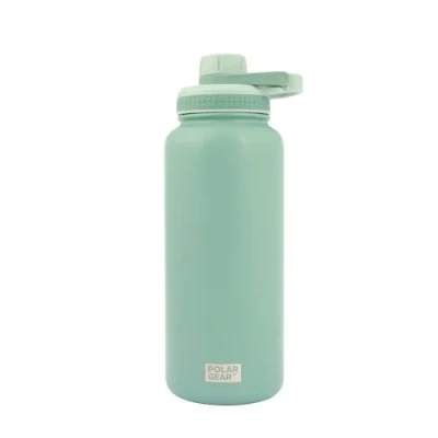Polar Gear Stainless Steel Water Bottle 1L Double Wall Vacuum Insulated Bottles with Dust Cover Screw Cap, Leakproof Metal Bottle, BPA Free Drinking Carry Handle (Green)