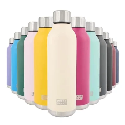 Polar Gear Stainless Steel Water Bottle 500ml Vacuum Insulated Metal Bottle, Double Wall, Leakproof Drinks 12H Hot, 24H Cold Perfect for Work, Travel, Sports, Gym (Cream)