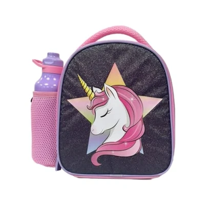 Polar Gear Unicorn Star Lunch Bag & Bottle Combo: Our insulated lunch bag has a food-safe PEVA lining and is fully insulated to keep your food fresh with a bottle included in pocket on the side of the bag. Perfect for kids on the go. Designed For Little Hands: Our Unicorns Stars kids lunch box has a simple zip closure and wide compartment so your child can access their food without difficulty, and the wide handle at the top of the kids lunch bags makes carrying easy. Compact Size That Fits A Healthy Kids Lunch: The lunch bag for kids measures 25x9x22cm and the 600ml bottle is secure in the side pocket - ample room for adding all your kids favourites making this girls lunch box great for everyday use for school, sports, after school clubs, days out and holidays. Fold Inside Out For A Spotless Clean: Our kids lunch bags for girls are super easy to clean. Simply curl the inside of the PEVA lining outwards by the seams to shake off crumbs and wipe down with a clean damp cloth to sanitise for next use. Write Your Child's Name on Their Lunch Bag : On the bottom of the bag is a clear plastic window with a paper insert you can write your child’s name on, so it is easy to see who the bag belongs to. Care & Safety Instructions: Wipe clean with damp cloth. Do not immerse in water. Not suitable for children under 36 months as small parts may present a choking hazard., Manufacturer: DNC UK Ltd