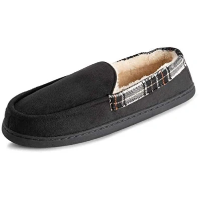 Polar Mens Memory Foam Duel Size Moccasin Loafer Outdoor Durable Rubber Sole Cozy Faux Fur Plush House Slipper Black Suede UK8 9/EU42 43 EA0636