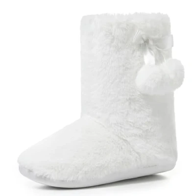 Polar Womens Faux Fur Slipper Boots Memory Foam Indoor Bootie with Anti Slip Rubber SoleSoft and Fluffy House Cute Pompoms Ankle Boot Slippers White UK6