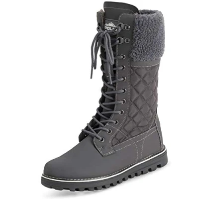 Polar Womens Faux Fur Warm Thermal Waterproof Outdoor Walking Snow Winter Rubber Sole Calf Boots Grey/Grey Shearling UK5/EU38 YC0602