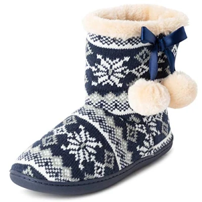 Polar Womens Memory Foam Pom Winter Faux Fur Luxury Plush Cosy Anti Slip Indoor Outdoor Slippers Navy/White UK5/EU38 YC0711