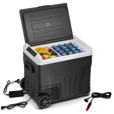 PolarForce 50L Cool Box Portable Electric Cooler with Compressor, lcd Panel, Dual Power (12V/230V), 20C to 20C, Off Road Wheels, Battery