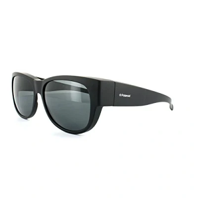 Polaroid Suncovers Fitover Sunglasses 9004/S DL5 Y2 Matte Black Grey Polarized are designed to fit over your prescription glasses to give you glare free vision with Polaroid's polarized lenses that also give 100% UV 400 protection against UVA, UVB and UVC. This modern classic style is shapely and very fashion forward and the polyamide lightweight frame is hypoallergenic and scratch and chemical resistant.