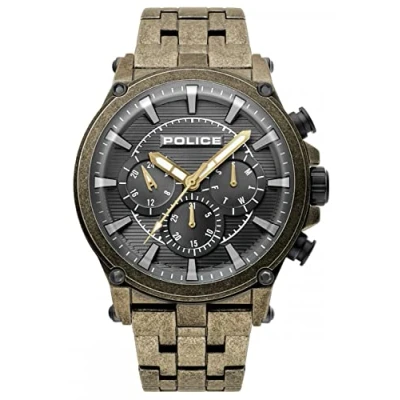 This chronograph for men has a case diameter of 47 mm and a strap width of 24 mm The case is made of stainless steel and is brown The watch strap is made of coated stainless steel and can be securely closed on the wrist with a folding clasp The watch has a water resistance of 5 bar (the watch is suitable for everyday use such as B. bathing, showering or washing hands) The heart of this watch is a quartz movement